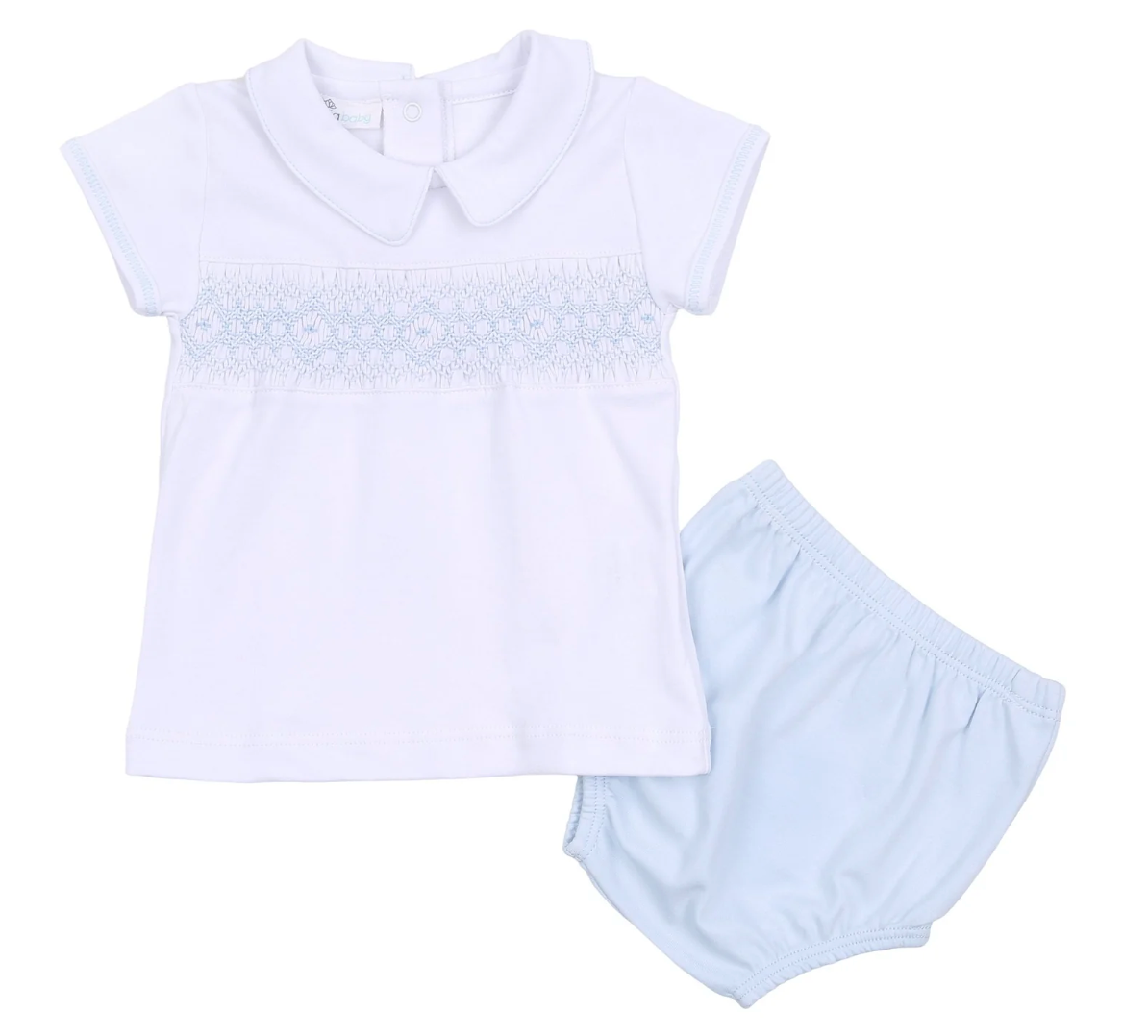 Archie Smocked Diaper Cover Set - White/Blue