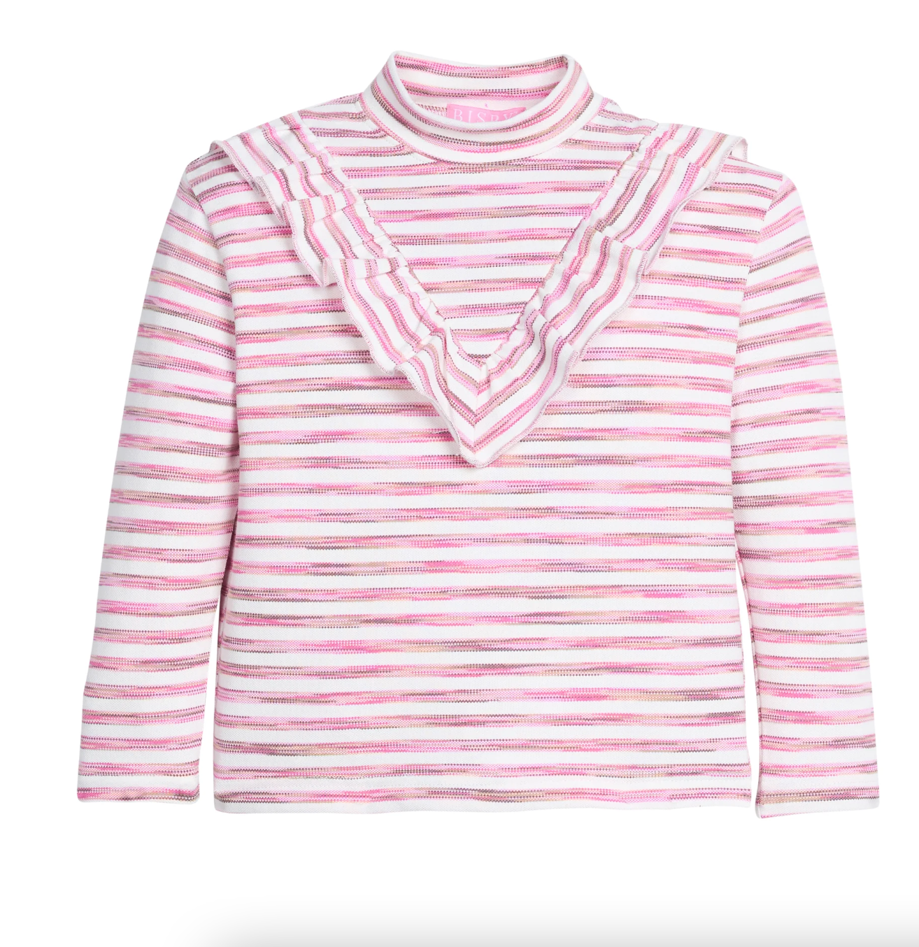 Sweet and cozy! The Aspen Top is an adorable striped piece with an eye-catching ruffled collar. Your girl will feel confident and playful in the Aspen Turtleneck.