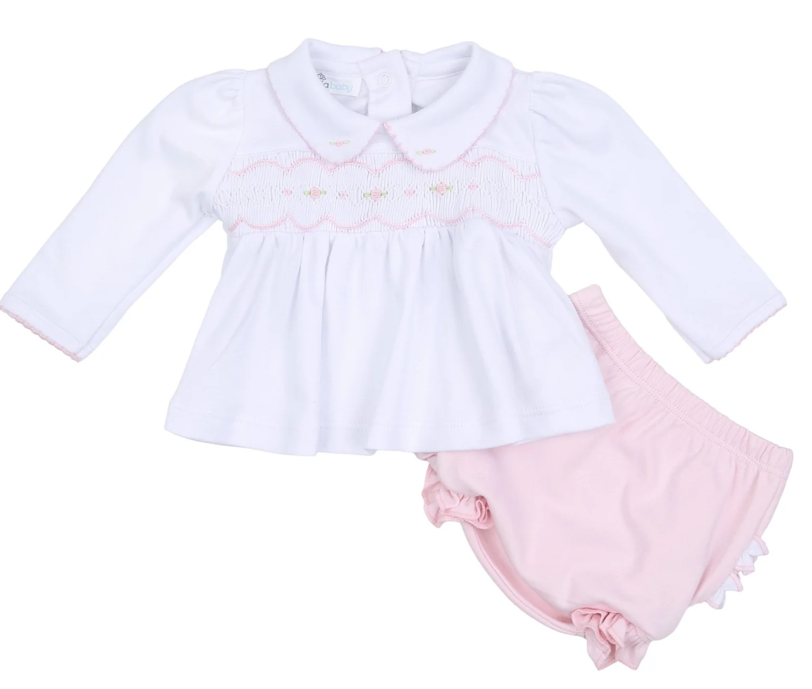 Ava Smocked Diaper Cover Set - White/Pink