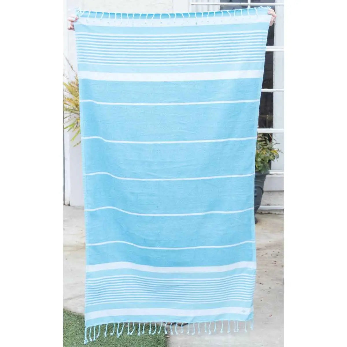 Our take on a Turkish beach towel, made of cotton in beautiful colors, plush fabric and finished with knotted tassel trim.