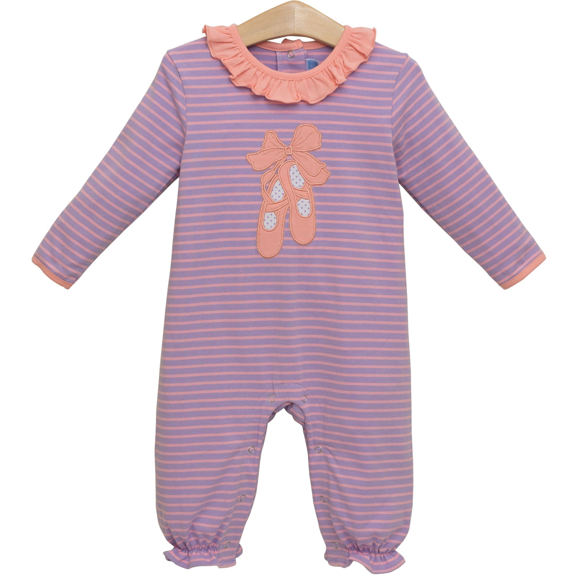 This playful knit romper features an adorable ballet slipper applique that adds a touch of charm to your little one's wardrobe. Soft and cozy, it’s perfect for twirling through playtime or naptime with equal comfort. Easy to dress up or down, this romper combines sweetness and practicality for everyday adventures.
