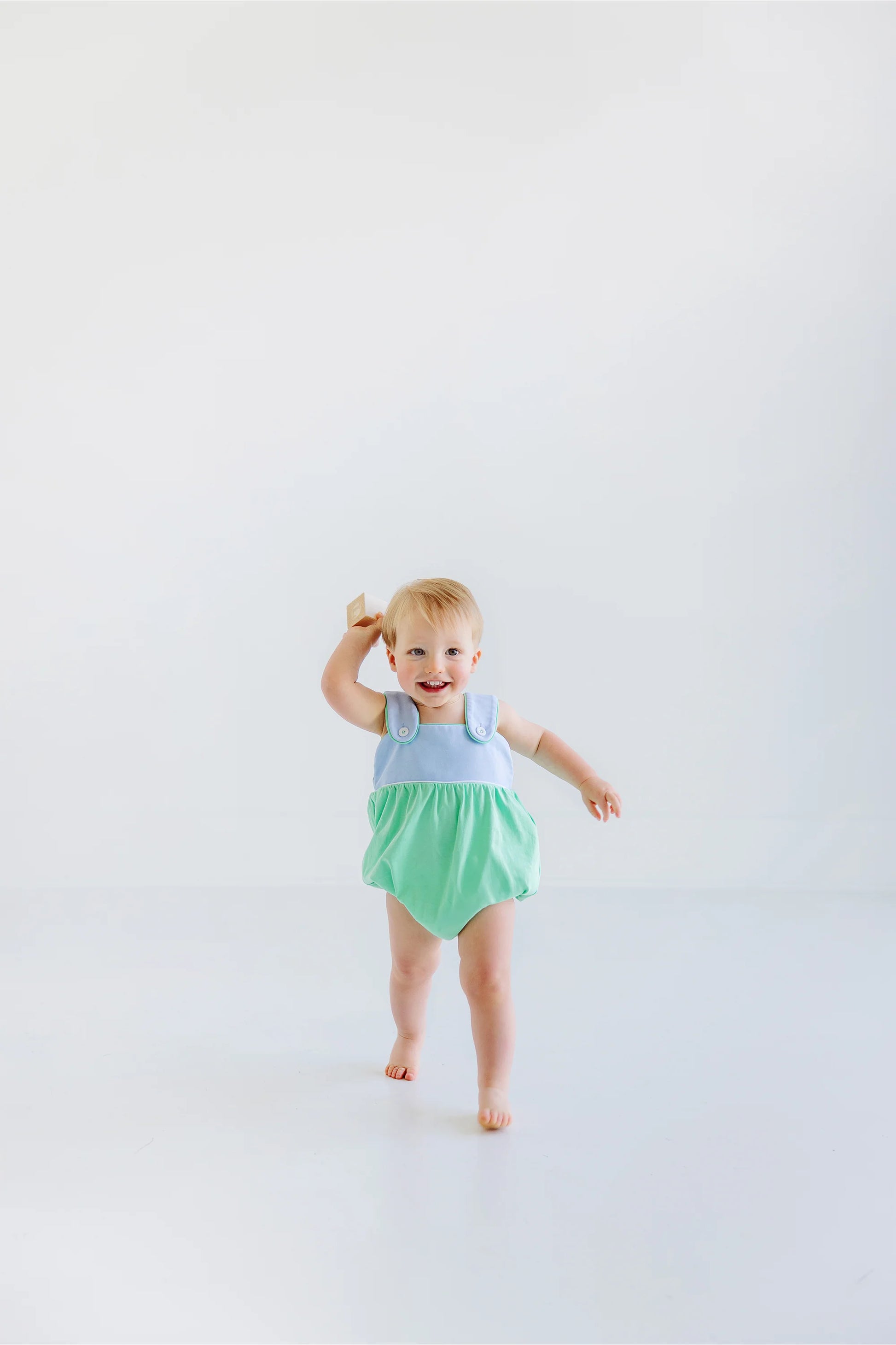 Your little one will be ready for fun in our Bingham Bubble in Beale Street Blue and Grace Bay Green! Featured in the softest prima, this adorable piece is a must-have for the warmer days ahead.