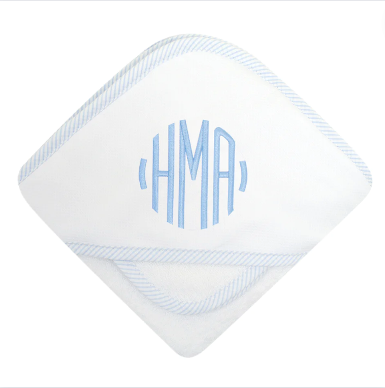 Our hooded towel and washcloth set is made of extra soft, pure cotton terry for newborn’s sensitive skin. The towel is so large that it can last well into the toddler years. The hood is covered with a pique layer, which helps to hold a monogram beautifully and is backed with terry cloth for extra absorbency. The washcloth is trimmed with coordinating fabric, making the perfect bath time set.