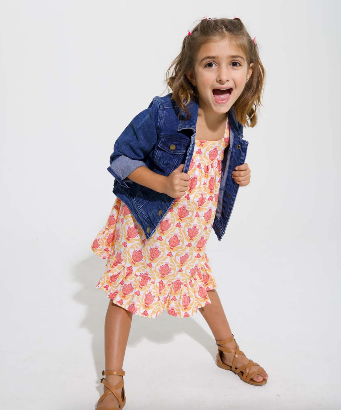 Let her mix and match with this playful denim jean jacket made just for girls! Crafted from durable denim, it’s perfect for layering over her favorite tees or dresses, adding a cool, casual vibe to any outfit. This jacket brings a fun, timeless style that keeps her comfy and ready for every adventure.