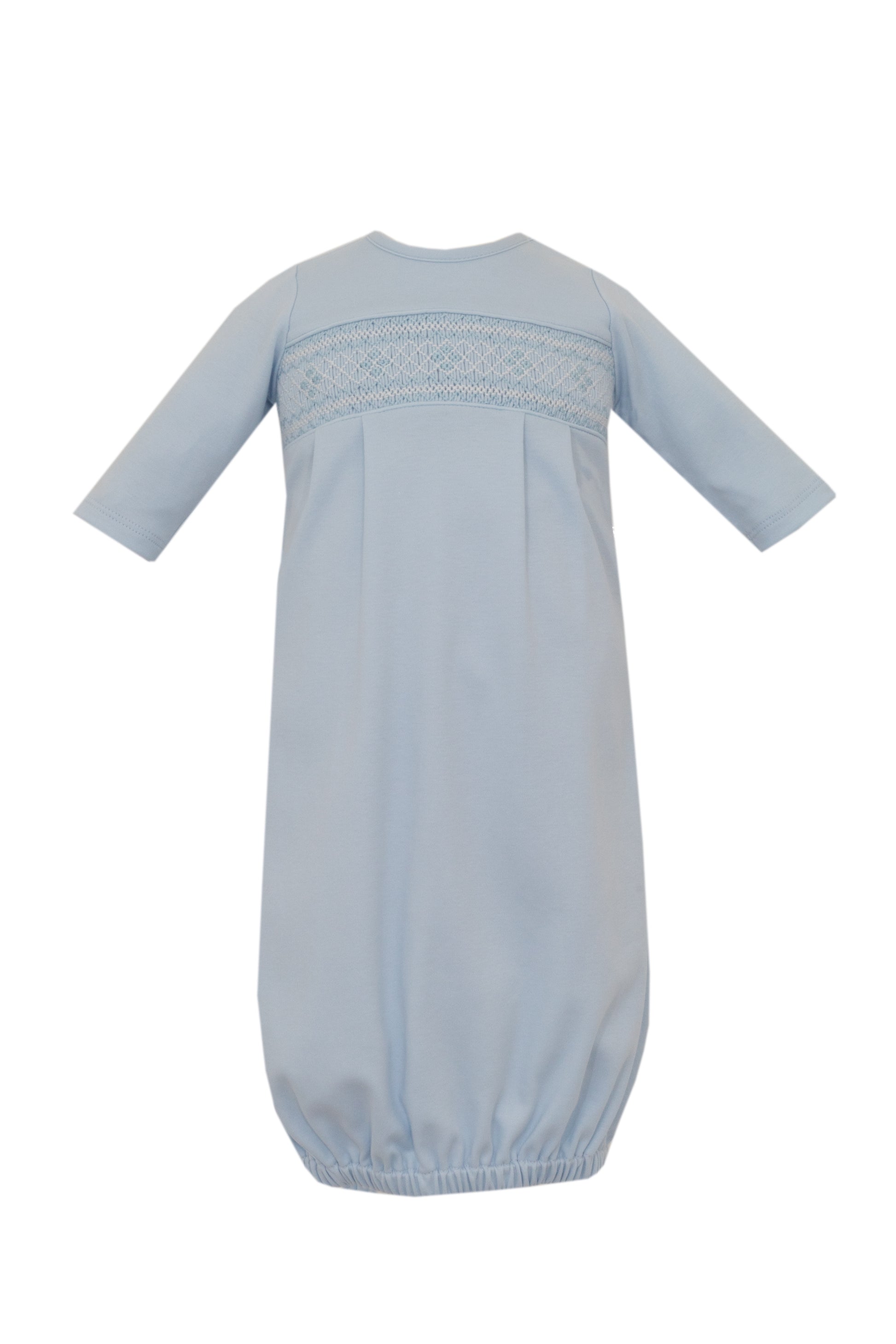 Introducing our Luke Smocked Gown, a playful twist on a classic design. Hand smocked with intricate detailing, this sweet blue gown is sure to turn heads. Perfect for any occasion, your little one will be both comfortable and stylish.