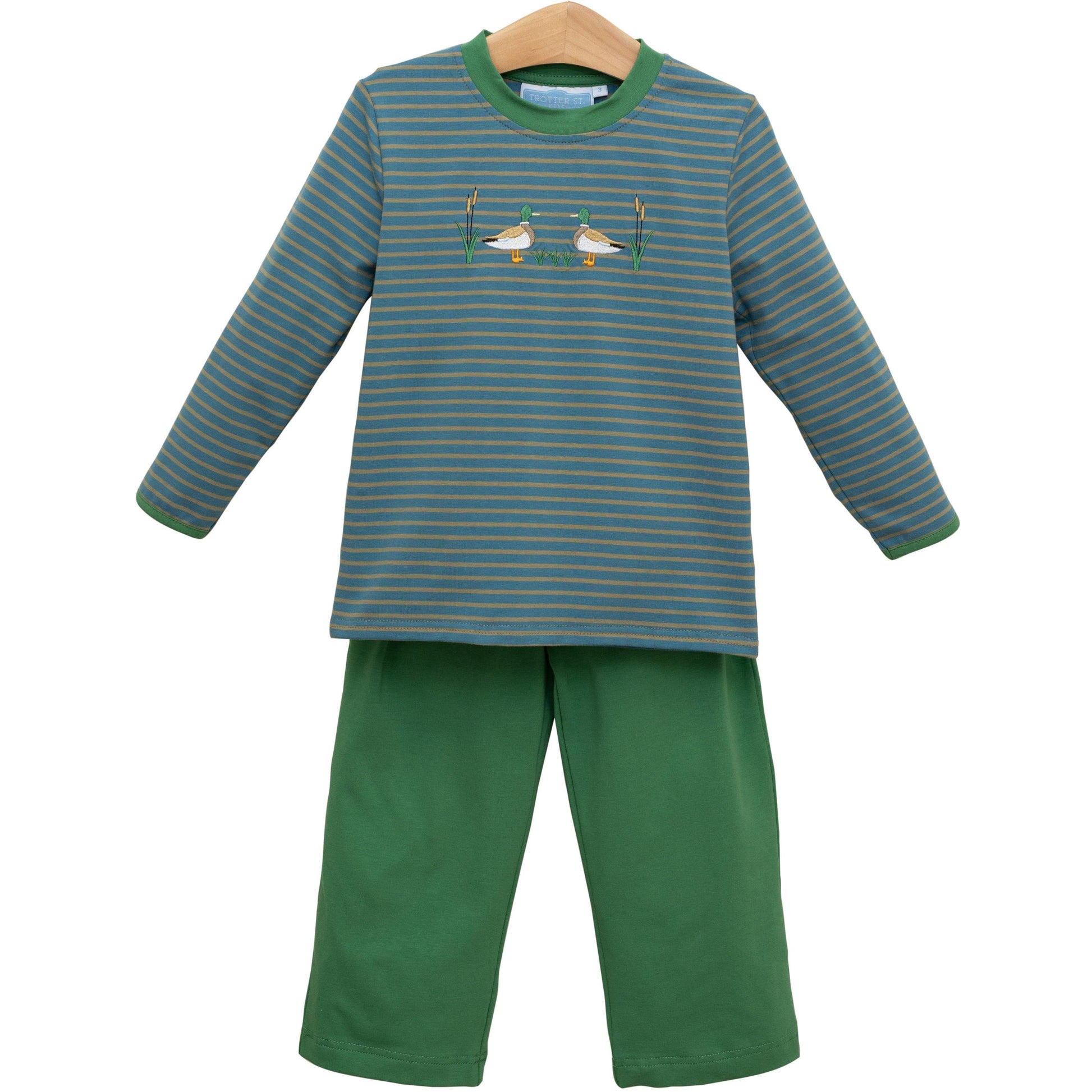 Get ready for any adventure with the Mallard Embroidery Pants Set! This cozy knit outfit blends comfort and style, featuring charming mallard embroidery that adds a splash of fun. Perfect for playdates, family outings, or lounging around, this set keeps your little one looking adorable no matter the occasion.