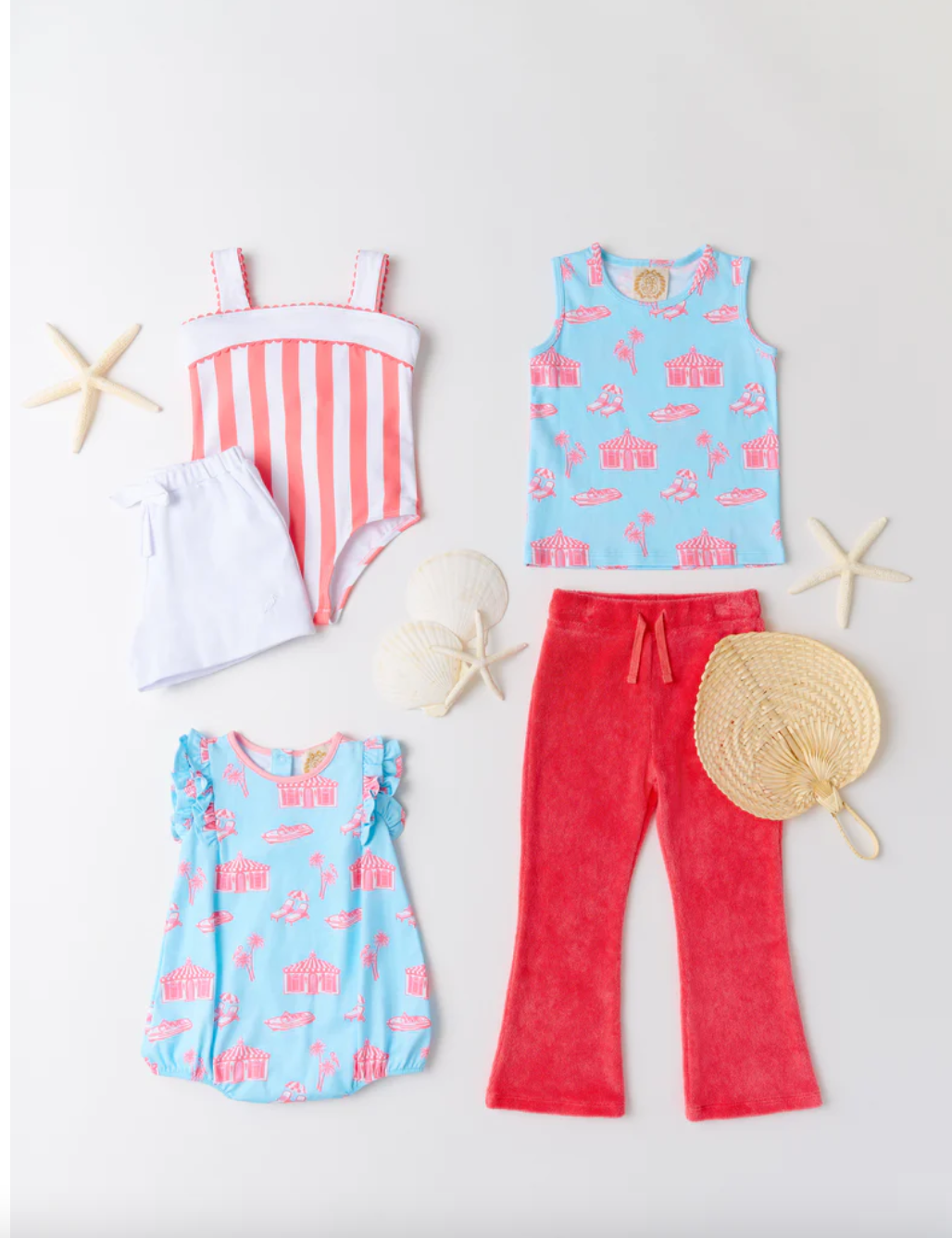 Breezy and beautiful, the Tay Tay Tank in Parrot Cay Canopy is a tropical essential for her summer wardrobe. This girls' tank top features a stunning beach print that's perfect for warm days, beach outings, and layering under her favorite cardigans. Lightweight, comfortable, and effortlessly stylish, it's the versatile top that keeps her cool and looking great from sunrise to sunset.