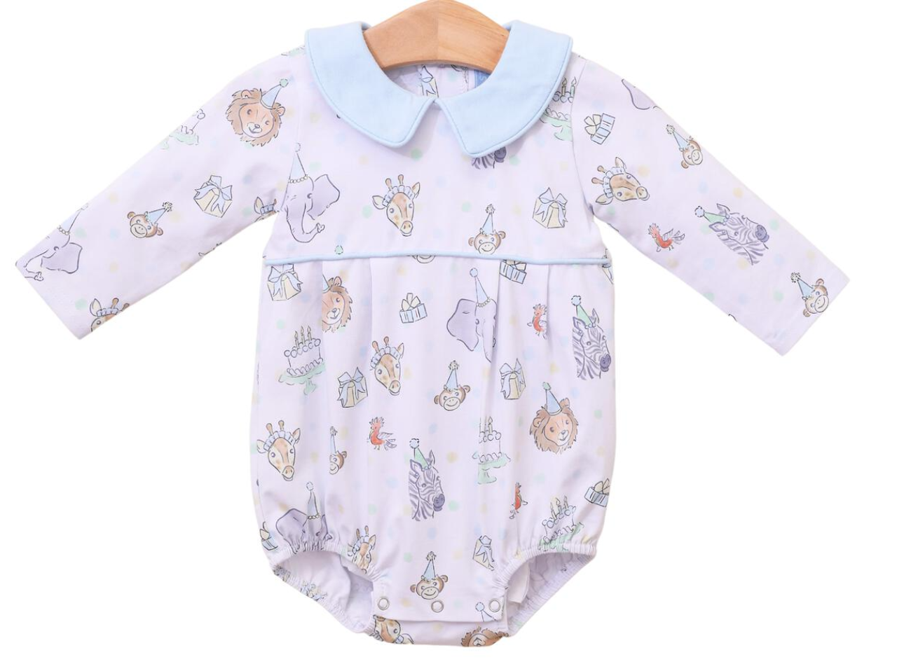 Celebrate your little one's big day with our Party Animals Bubble - the perfect addition to your baby's birthday outfit. This playful and quirky bubble suit features adorable party animal graphics that will make your baby stand out. Let your baby be the center of attention with this fun and unique outfit.