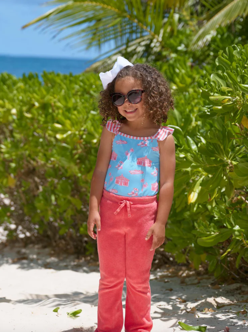 Say hello to the Patty Pants (Terrycloth) in Parrot Cay Coral—the perfect post-beach coverup that transitions seamlessly from sandy shores to seaside cafés. Crafted from soft terrycloth fabric, these girls' pants are ideal for throwing on over swimsuits, lounging by the pool, or strolling the boardwalk. The vibrant coral hue captures that sun-kissed coastal vibe, while the easy pull-on style means she's ready for the next beach adventure in seconds.