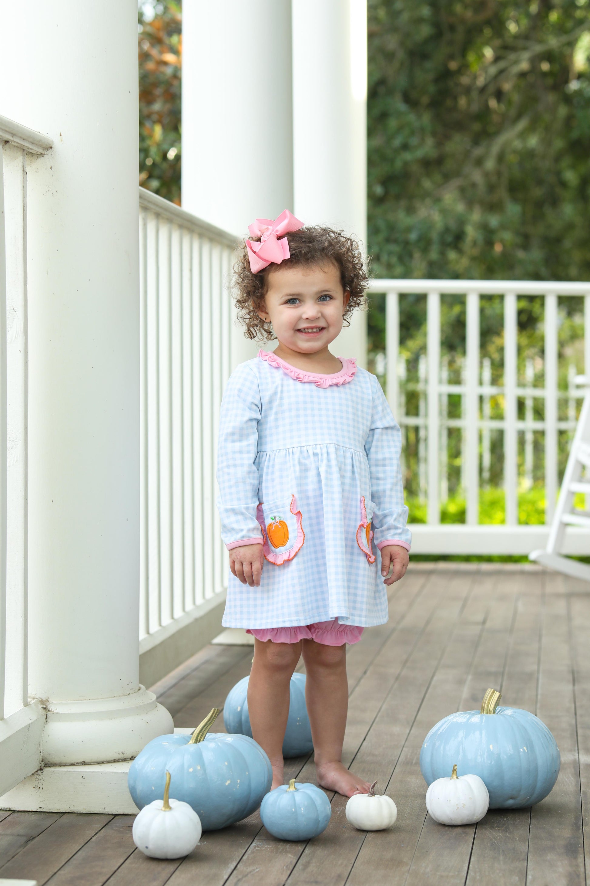 Dress your little one in autumn charm with this playful pumpkin bloomer set. Featuring soft knit fabric and adorable pumpkin appliques on the pockets, it adds a festive touch to everyday comfort. Perfect for cozy fall days and seasonal photos, this set brings warmth and whimsy to your child’s wardrobe.