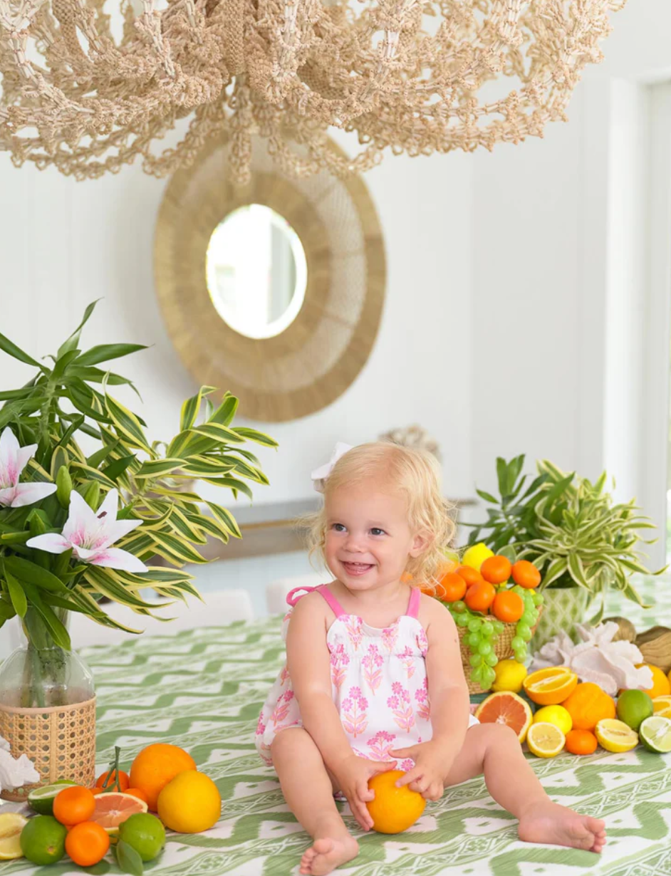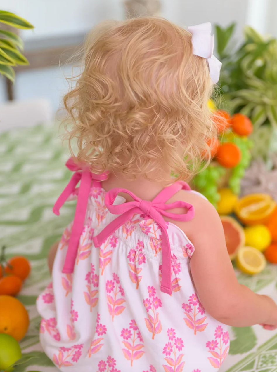 Precious charm meets baby comfort in the Rosey Romper in Bridgetown Harbour Hand Block with Winter Park Pink. This girls' romper showcases a beautiful hand block print that brings unique style to her everyday wardrobe, while the soft fabric and easy snaps make dressing a breeze. Whether she's exploring the backyard, attending a playdate, or posing for photos, it's the versatile one-piece that delivers both beauty and practicality.