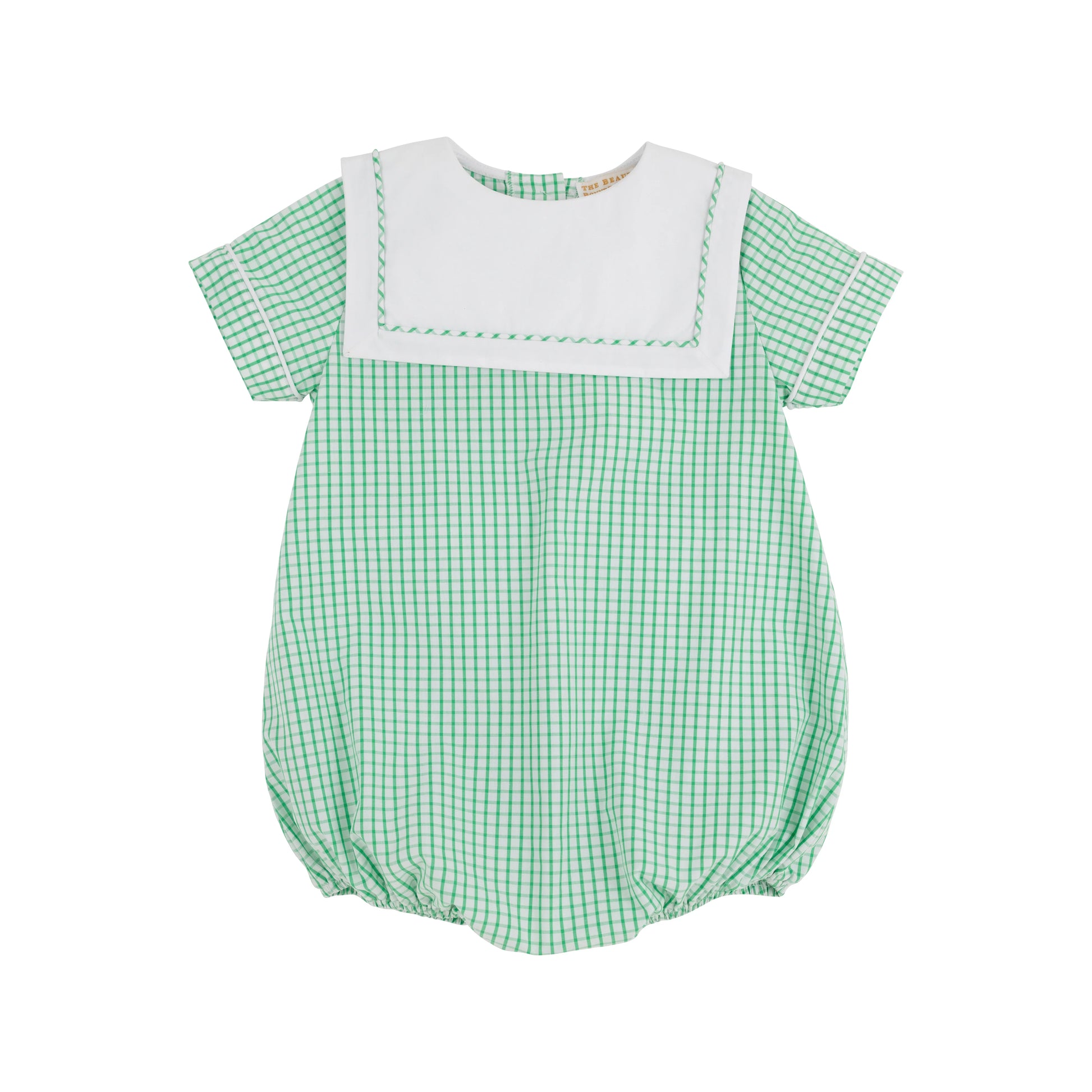 Your dapper little gent needs our Townes Top Sail Bubble in his wardrobe! Featuring Kiawah Kelly Green Windowpane with Worth Avenue White, he's sure to be the most handsome in this piece.